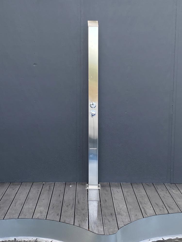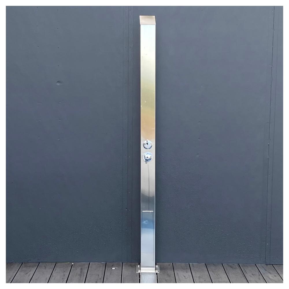 | Features | HEIGHT: 83"/210CM, WIDTH: 3.9"/10CM, DEPTH: 2.8"/7CM, BASE: 7.9"/20CM X 7.9"/20CM FEATURES: Non-Corrosive Marine Grade 316 Brushed Stainless Steel Complete Fully Plumbed In System for Hot & Cold Water 10 years warranty on shower frame and 12 months warranty on all parts Protection of vital parts with top and back covers Easy Glide functionality for directional water flow diverter Max Water Flow Pressure: 120 psi / Restricted to 80 psi 8.5L (liters per minute) As per the WELLS Regulations ( Adjustable) In-built concealed Waterfall showerhead Concealed Foot Water Spout Standard 1/2" inlet connectors Pre-assembled & pre-water tested |